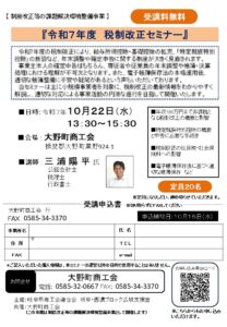 本セミナーでは、小規模事業者の方を対象に、税制改正のポイントや帳簿・決算処理、電子帳簿保存法への対応をわかりやすく解説し、円滑な事業運営に役立つ情報を提供します。