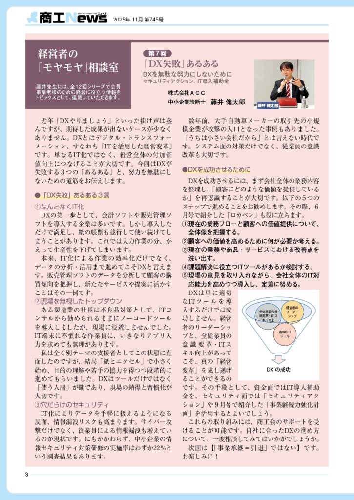 岐阜県商工会連合会は、県内商工会の活動や中小企業支援情報を紹介する機関誌「商工ニュース」令和7年11月号を発刊しました。経営に役立つ情報や各地の商工会の取組事例などを掲載しております。ぜひご覧ください。