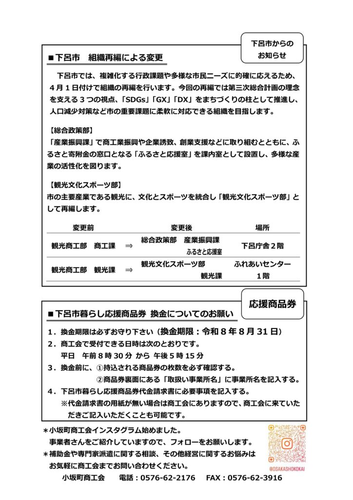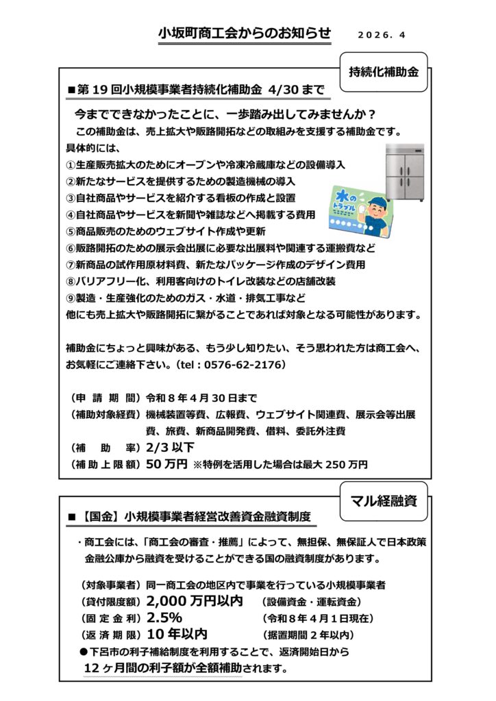 小坂町商工会では、会員の皆様のお役に立つ情報をスピーディーにお届けしてまいります。