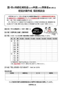 日程を追加しました!経営計画作成個別相談会