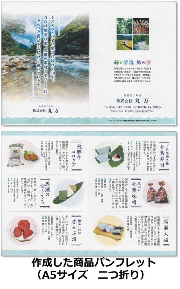 パンフレットを作成、当社商品と合わせて土産物店店頭への設置や、取引先への配布を行った。配布してから2か月ほどで取引先が新たに1社増加。