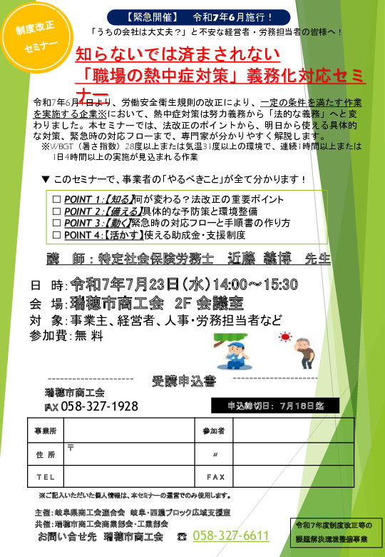 (瑞穂市商工会からのお知らせ)知らないでは済まされない 「職場の熱中症対策」義務化対応セミナー
