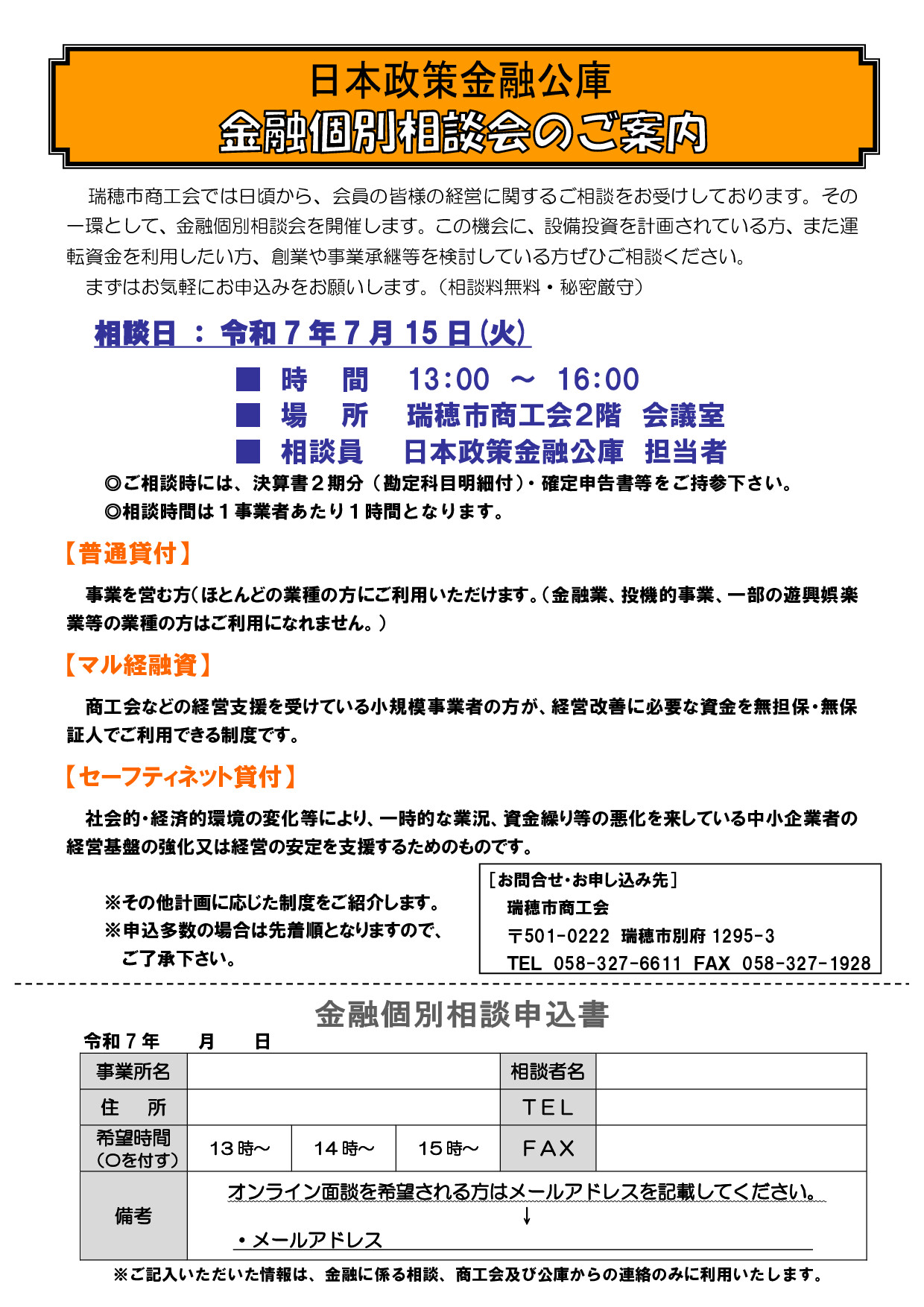 (瑞穂市商工会からのお知らせ)金融個別相談会のご案内について