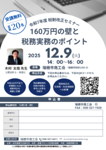 (瑞穂市商工会からのお知らせ)令和7年度 税制改正「160万円の壁と税務実務のポイントセミナー」のご案内