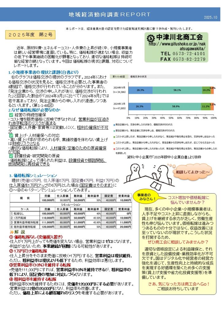 本レポートでは、原材料費・人件費の上昇に直面する小規模事業者の経営課題として「価格転嫁」を取り上げ、その重要性と具体的なシミュレーションを紹介しています。価格転嫁は、収益力の維持だけでなく、人材確保や設備投資の原資確保にもつながる持続的経営の鍵となっています。