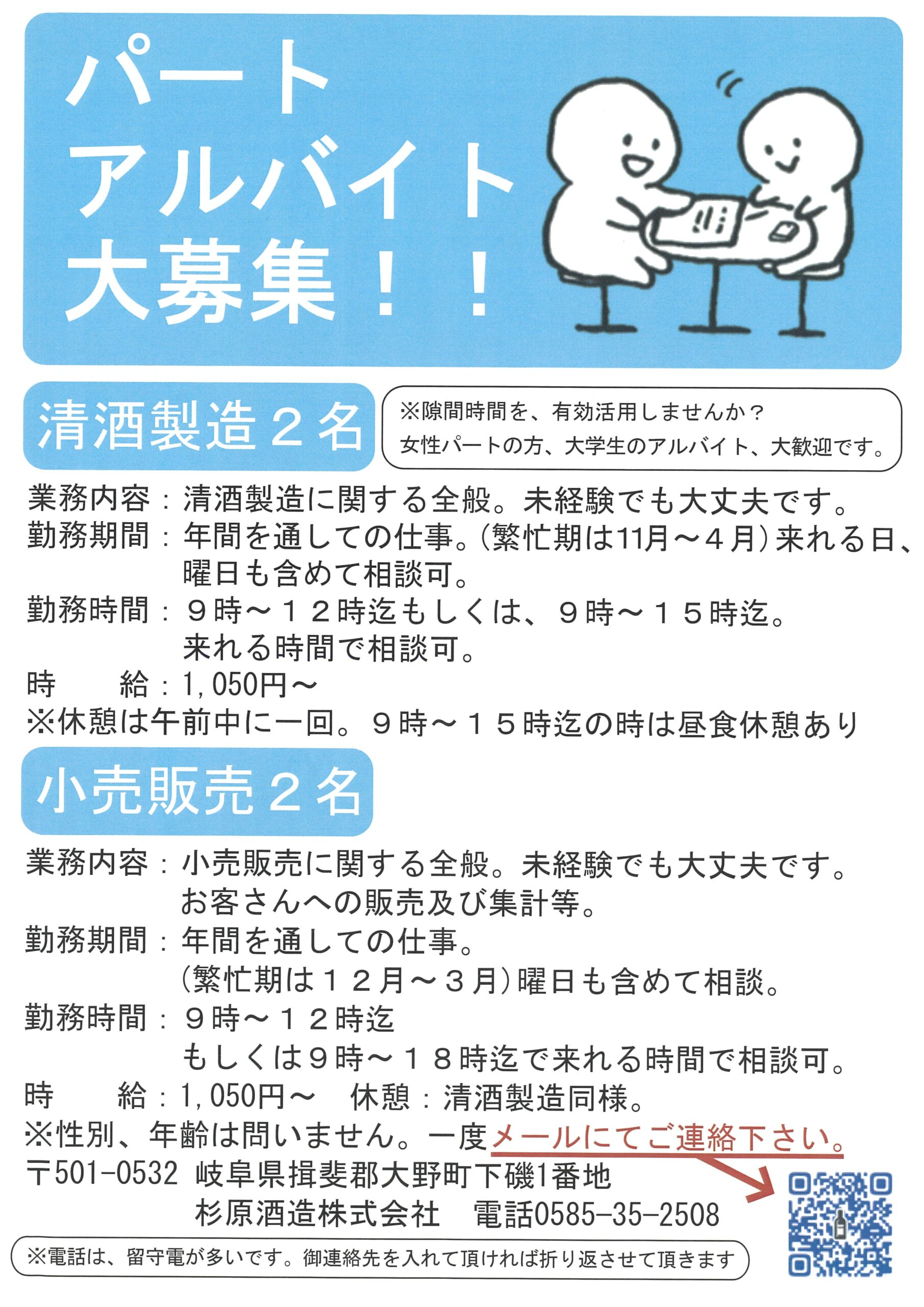 杉原酒造株式会社岐阜県揖斐郡大野町従業員数0〜5名支援機関大野町商工会