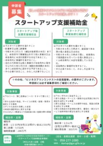 (岐阜県産業経済振興センターよりお知らせ)「スタートアップ支援補助金」募集開始のご案内