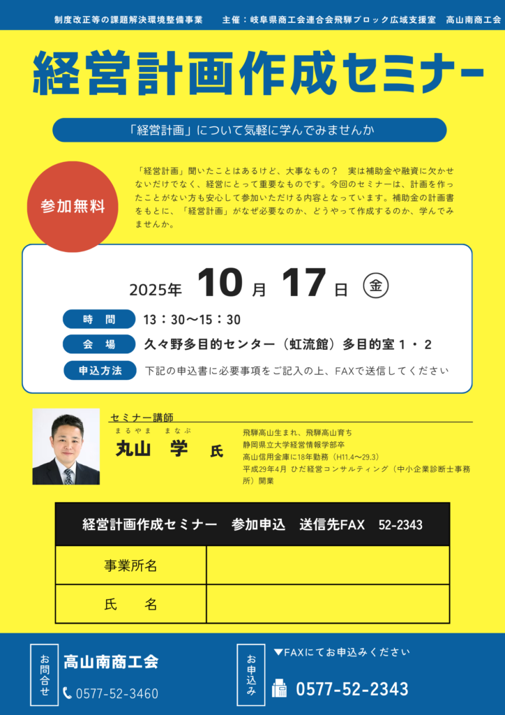 高山南商工会 TEL:0577-52-3460 FAX:0577-52-2343